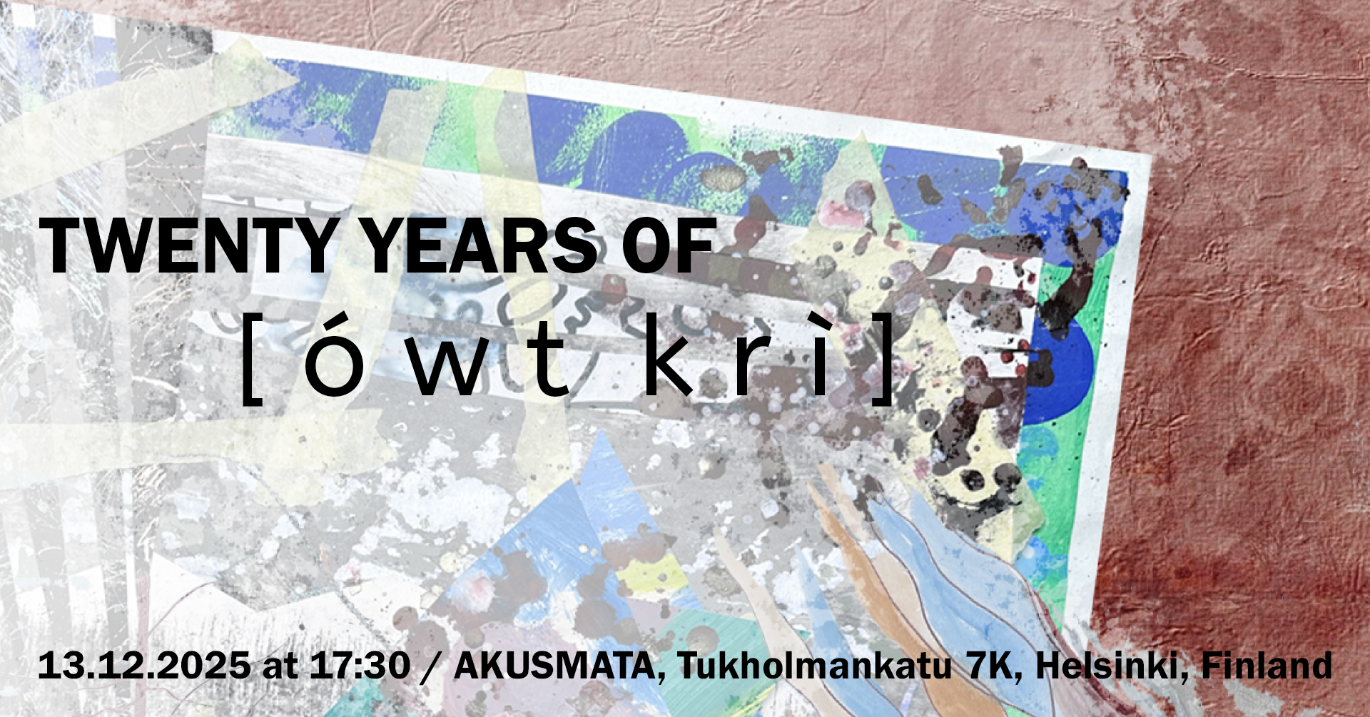 The second performance is a duo performance with Valtteri Hyvärinen know as one third of the ambient collective Kolmiotaajuus and sole member of the electronic powerhouse known as Desert M. Valtteri and [ówt krì] has on multiple occasions shared the stage, but this will be the first time they actually play together.